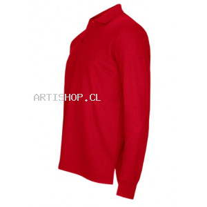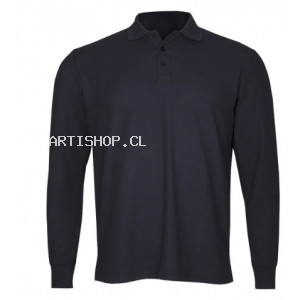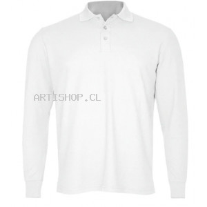 Polera pique manga larga  Composición:. 80% Algodón, 20% Poliéster. 3 Botones. Tallas: XS, S, M, L, XL, XXL, XXXL. Colores: Azul, Azul Marino, Blanco, Naranjo, Rojo, Gris. Modelo hombre y mujer.