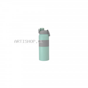 Botella deportiva con doble pared, sellada al vacío. Interior de acero 304 y exterior de acero 201. . Tapa plástica a rosca en color gris con anillo de silicona y manija plástica para su agarre, combinada con tapa rebatible en colores translucidos a juego con el color de la botella. Boquilla con sorbete incluido. Grip de silicona color gris para mejor agarre. Mantiene alrededor de 8 hs la temperatura de las bebidas calientes y frías.